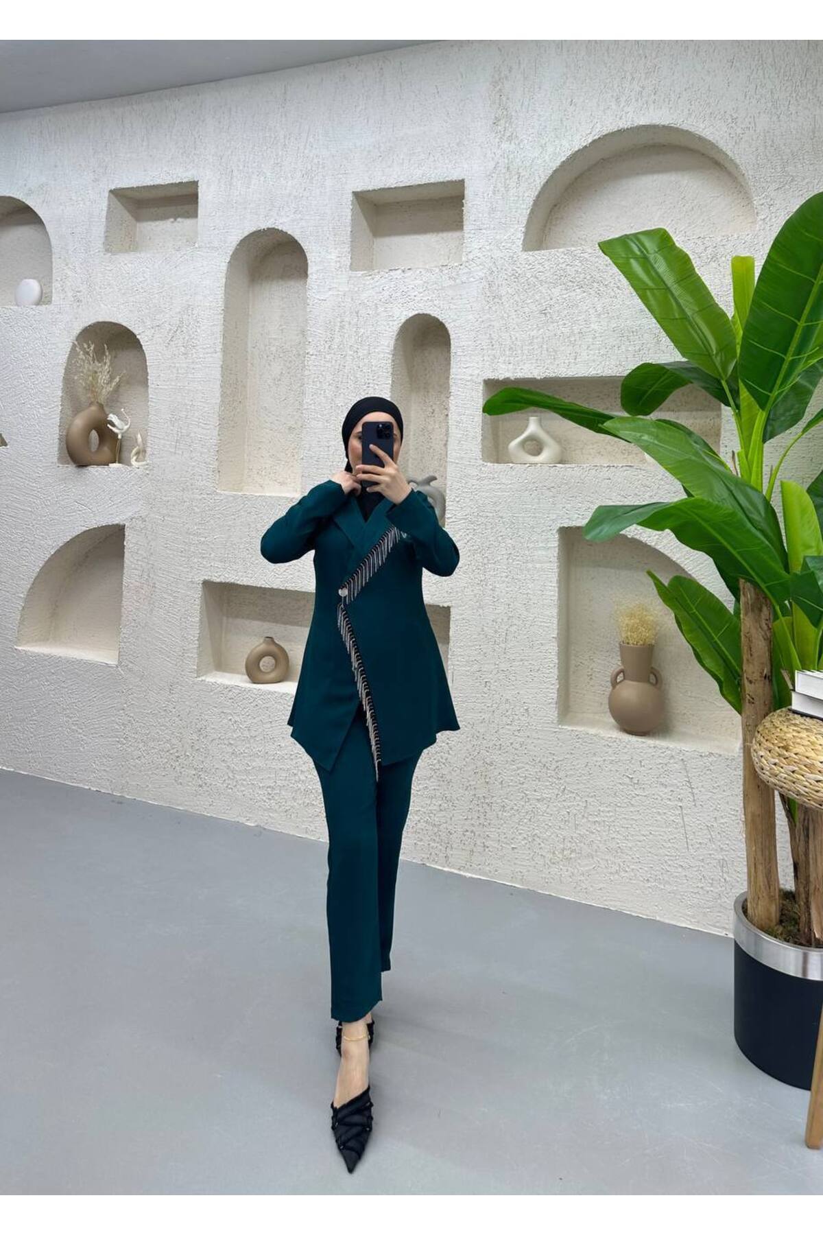 NHMODA مجموعة الحجاب المزدوج المتدلي الحجري