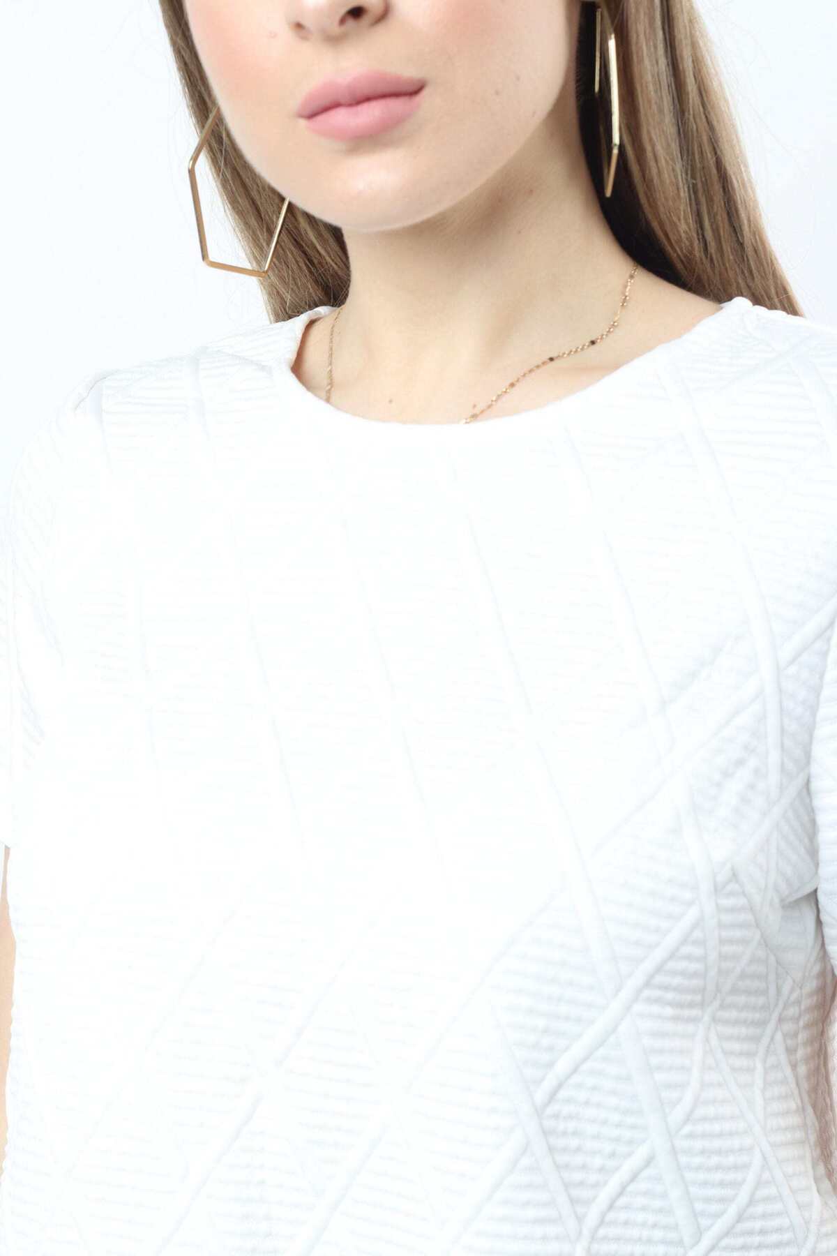 ميزات بلوزة قصيرة من القطن بنمط مثلث من Nichii