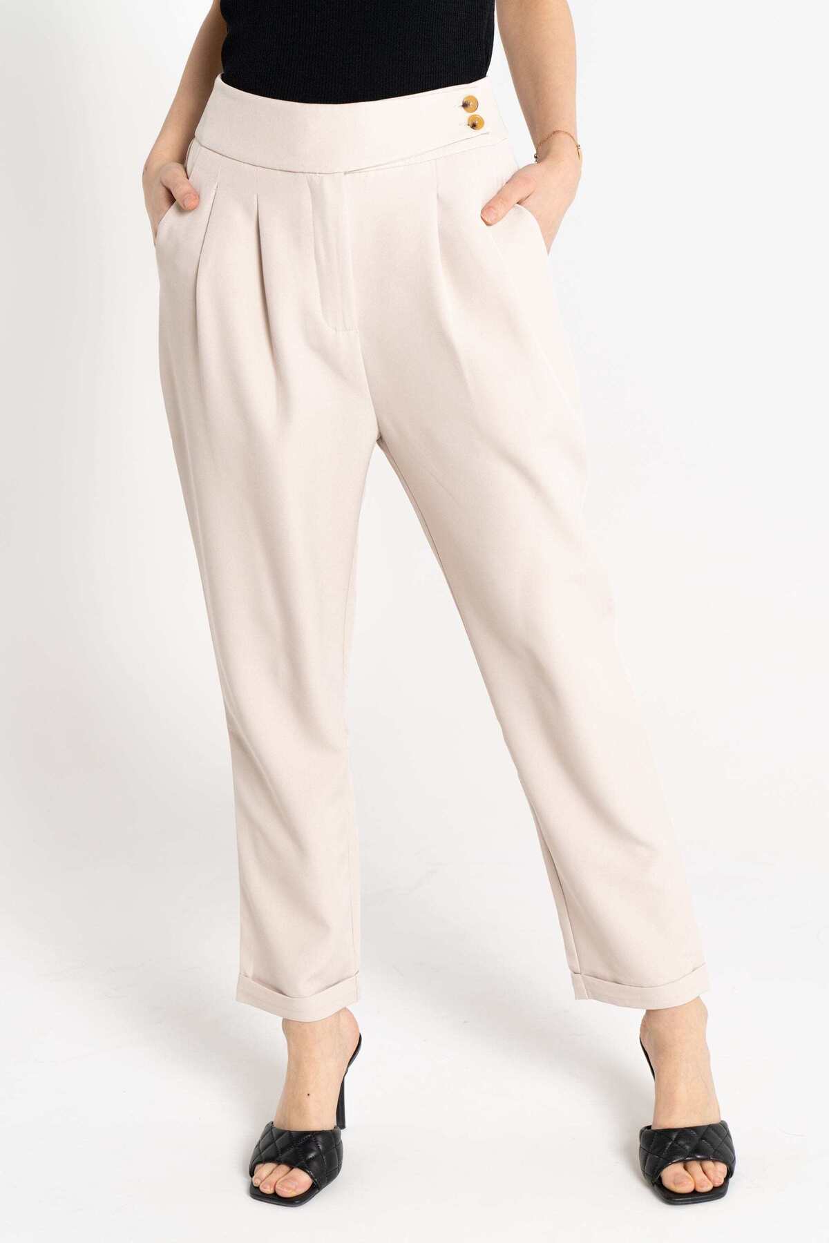 ميزات بنطال طويل سادة بخصر عالٍ وأزرار جانبية من Nichii