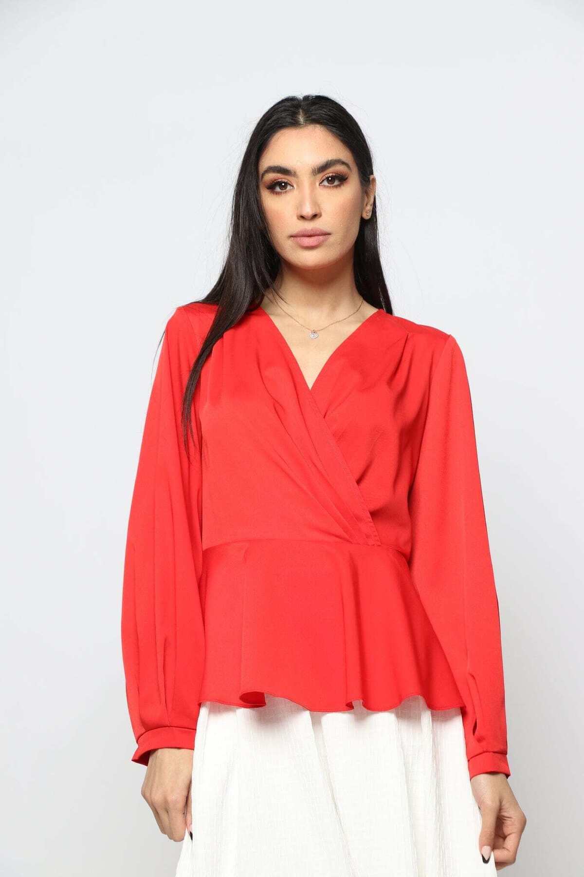 ميزات بلوزة من البوليستر منفوخة بأكمام طويلة من Nichii