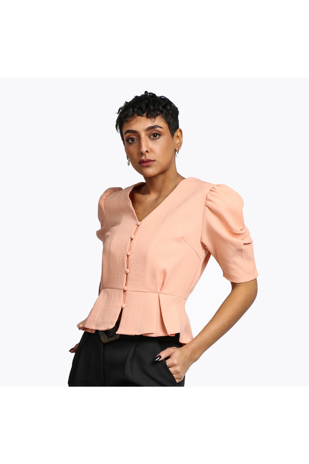 ميزات بلوزة منفوخة الخصر بأزرار أمامية من Nichii