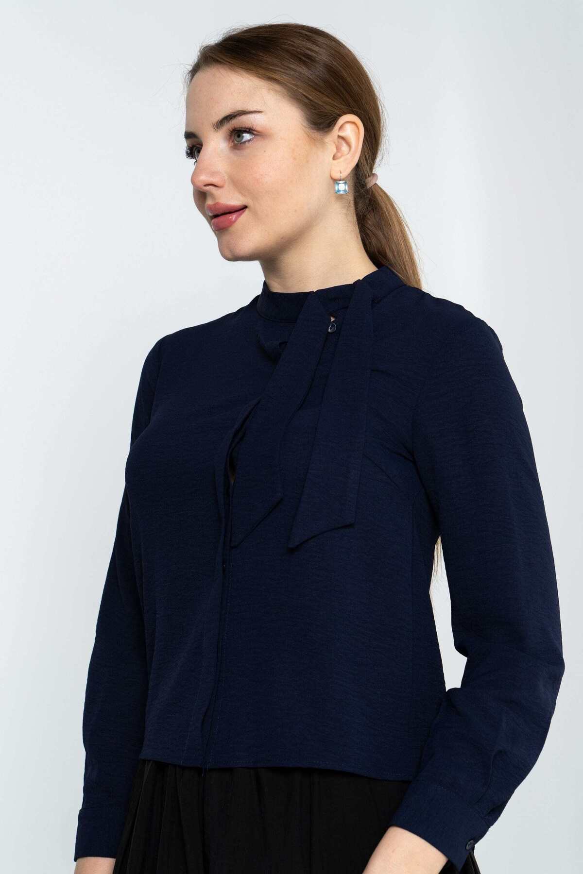ميزات بلوزة سادة مع ربطة عنق وأكمام طويلة من Nichii