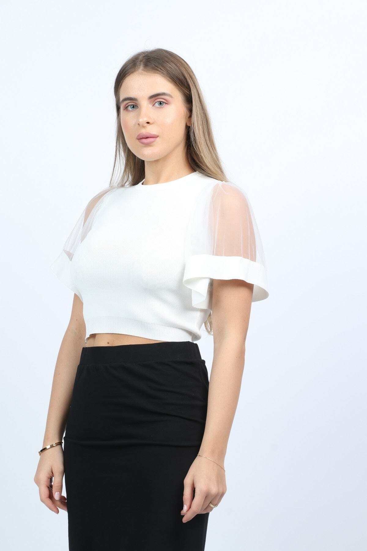 ميزات قميص قصير سادة بأكمام شفافة من Nichii
