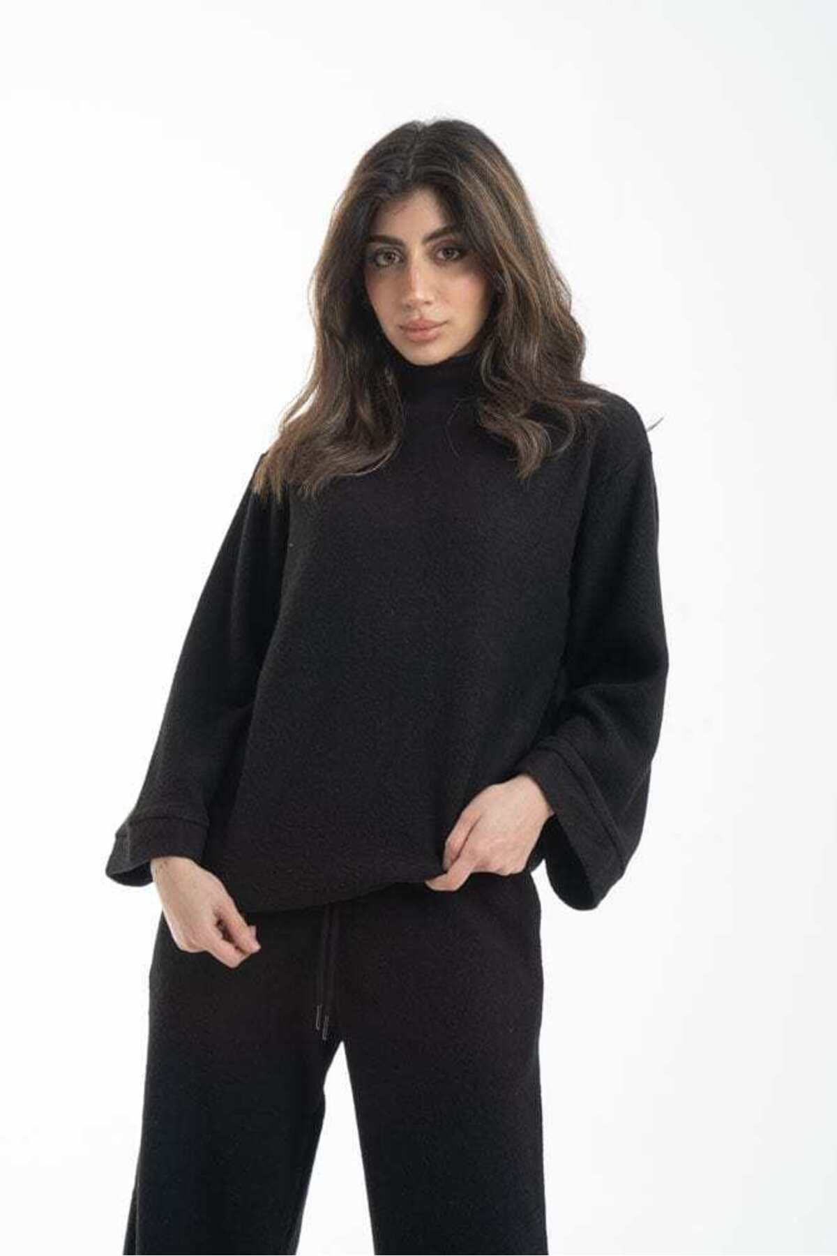 ميزات بلوزة سادة برقبة عالية وأكمام طويلة من Nichii