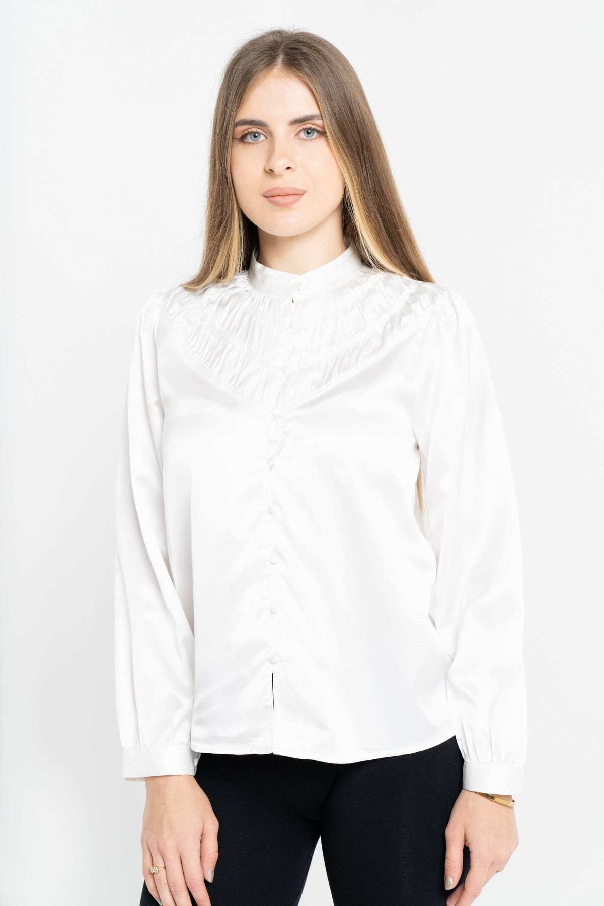 ميزات بلوزة سادة بأكمام طويلة وأزرار أمامية من Nichii