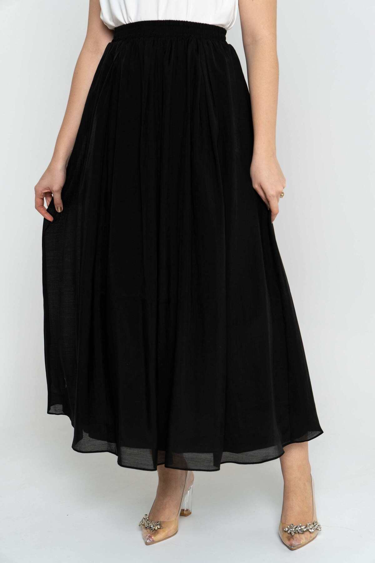 ميزات تنورة ماكسي سادة مع كشكشة من Nichii