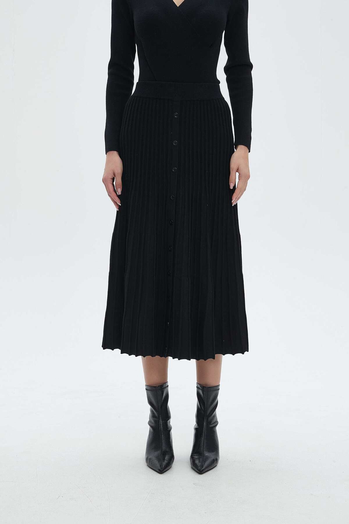 ميزات تنورة ميدي سادة مع تفاصيل كشكشة من Nichii