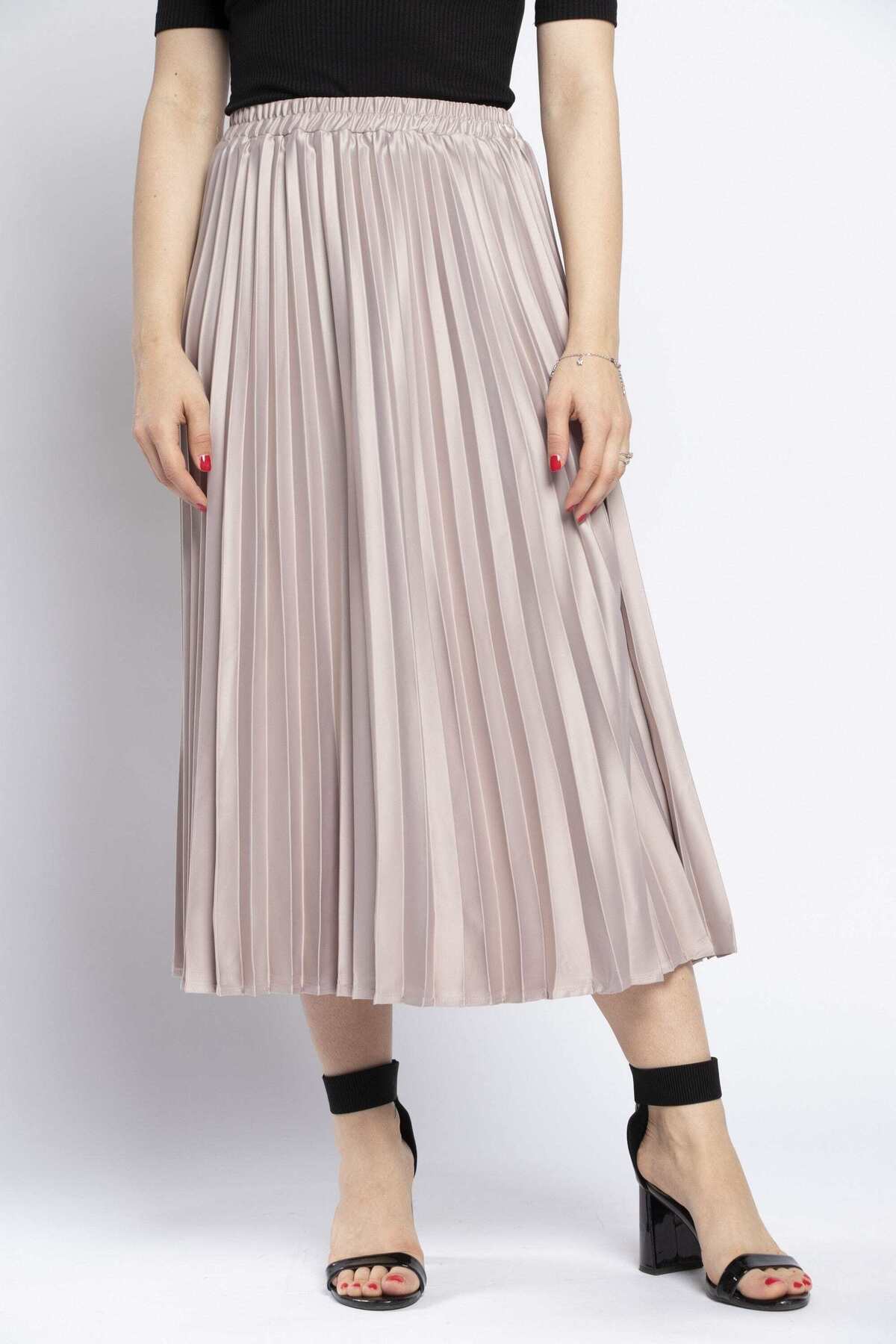ميزات تنورة ميدي مطوية سادة من Nichii
