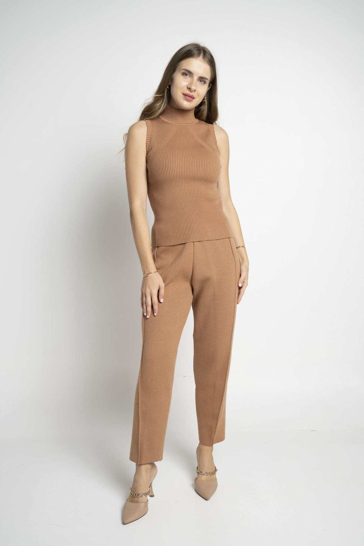 ميزات بلوزة سادة مضلعة بياقة مدورة من Nichii
