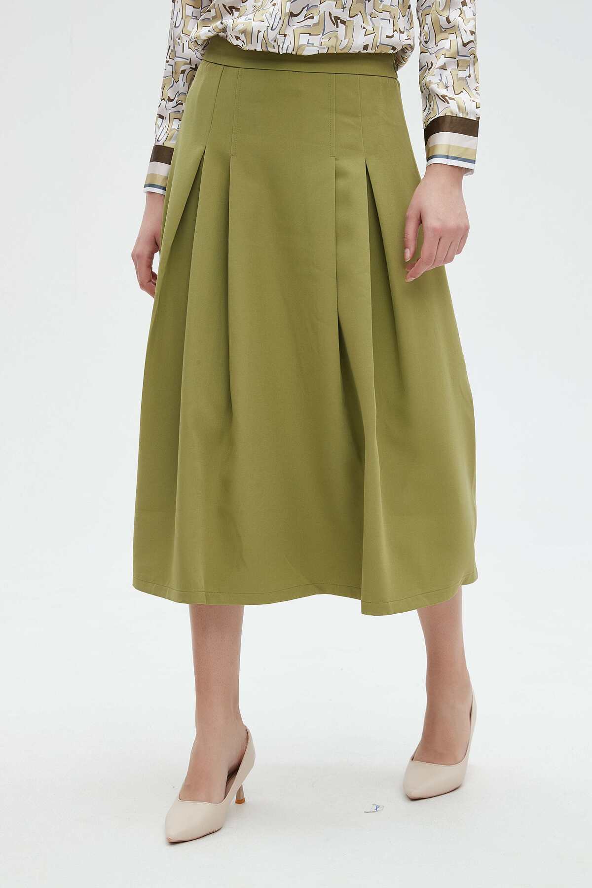 ميزات تنورة ميدي سادة مكشكشة من Nichii
