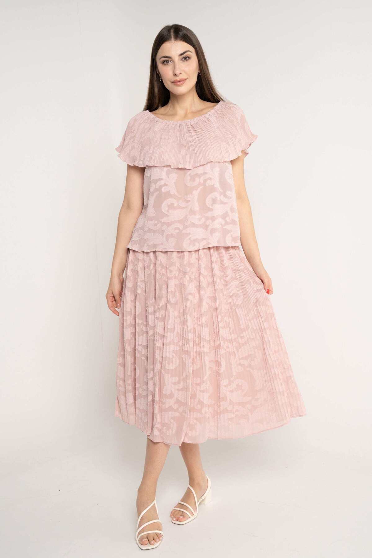 ميزات تنورة ميدي سادة مكشكشة من Nichii