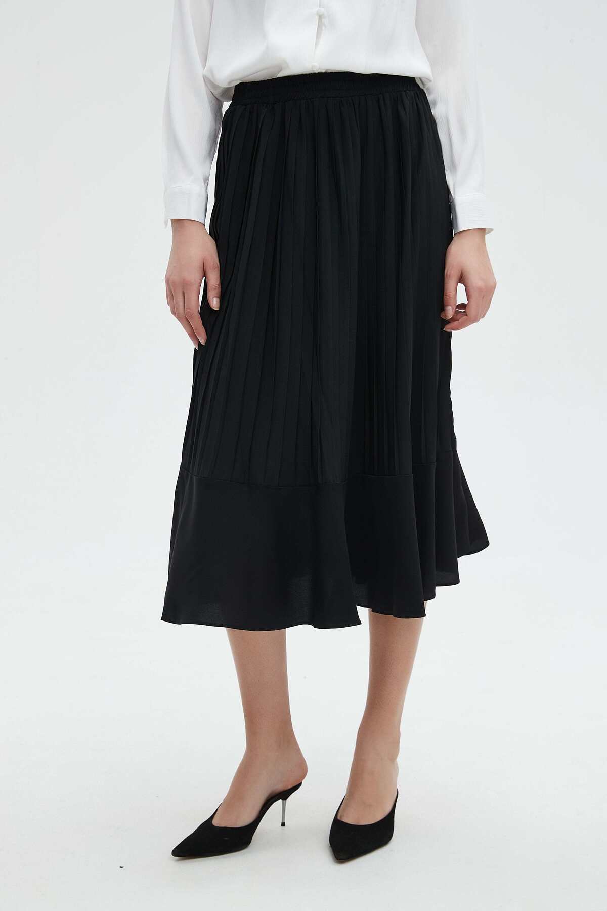ميزات تنورة ميدي سادة مكشكشة من Nichii