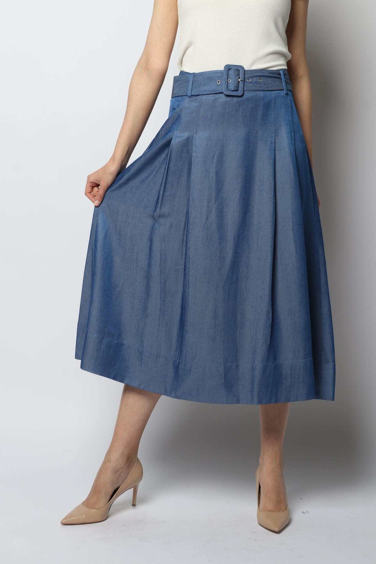 Nichii تنورة ميدي سادة مكشكشة