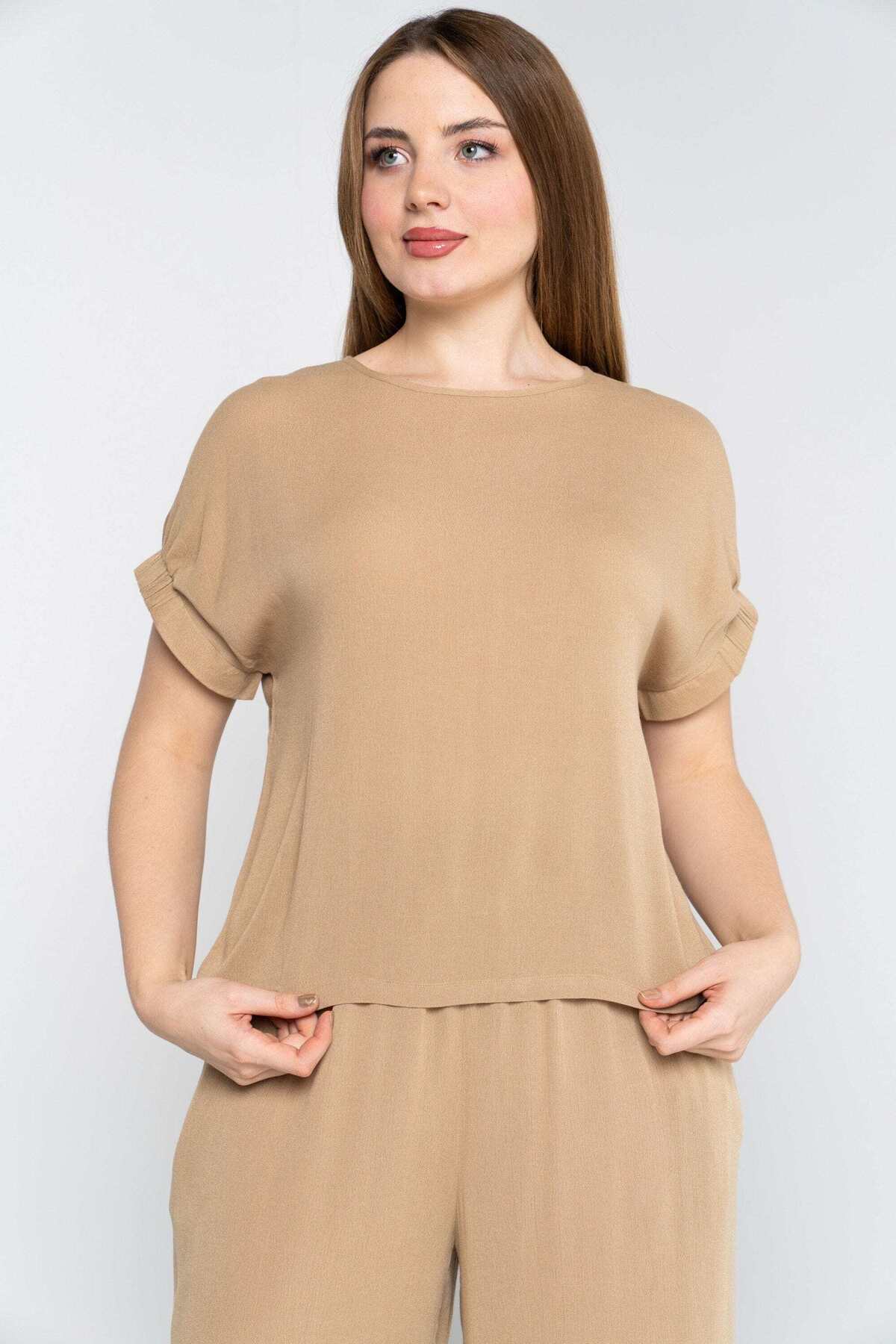 ميزات بلوزة سادة بأكمام قصيرة ورقبة دائرية من Nichii