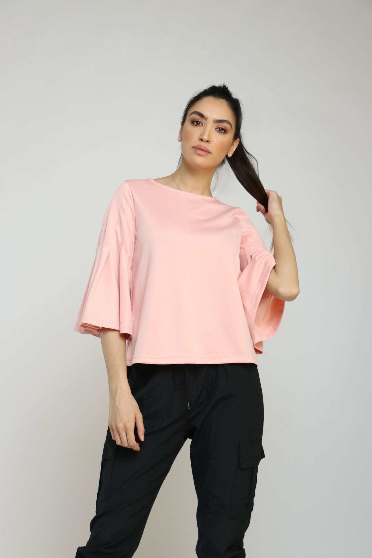 ميزات بلوزة سادة بأكمام واسعة من Nichii