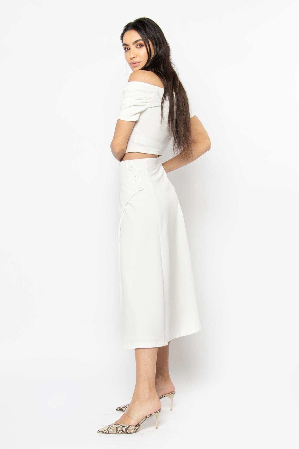 ميزات بلوزة برقبة مربعة وأزرار أمامية من Nichii