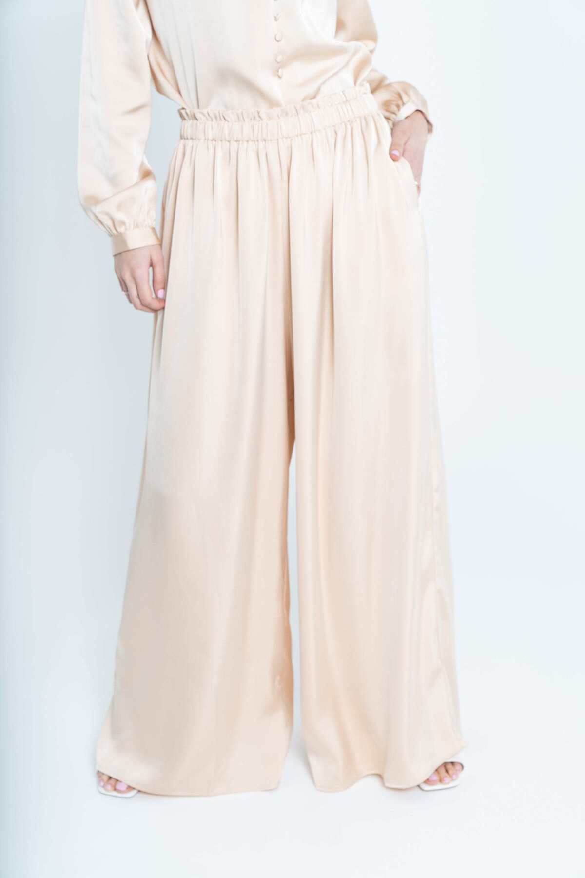 ميزات بنطلون سادة واسع الساق من Nichii