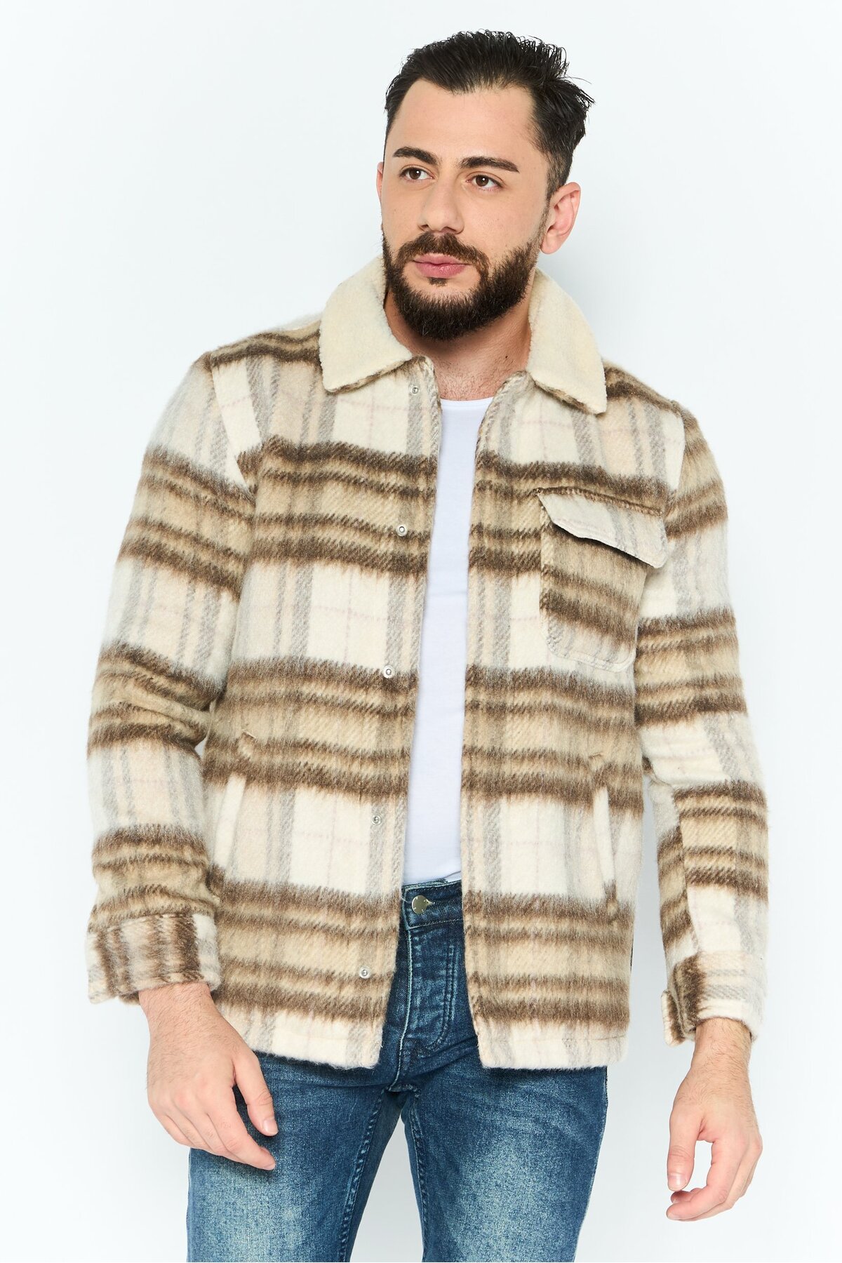 ميزات جاكيت رجالي من قماش ناعم، كريمي من Night Addict