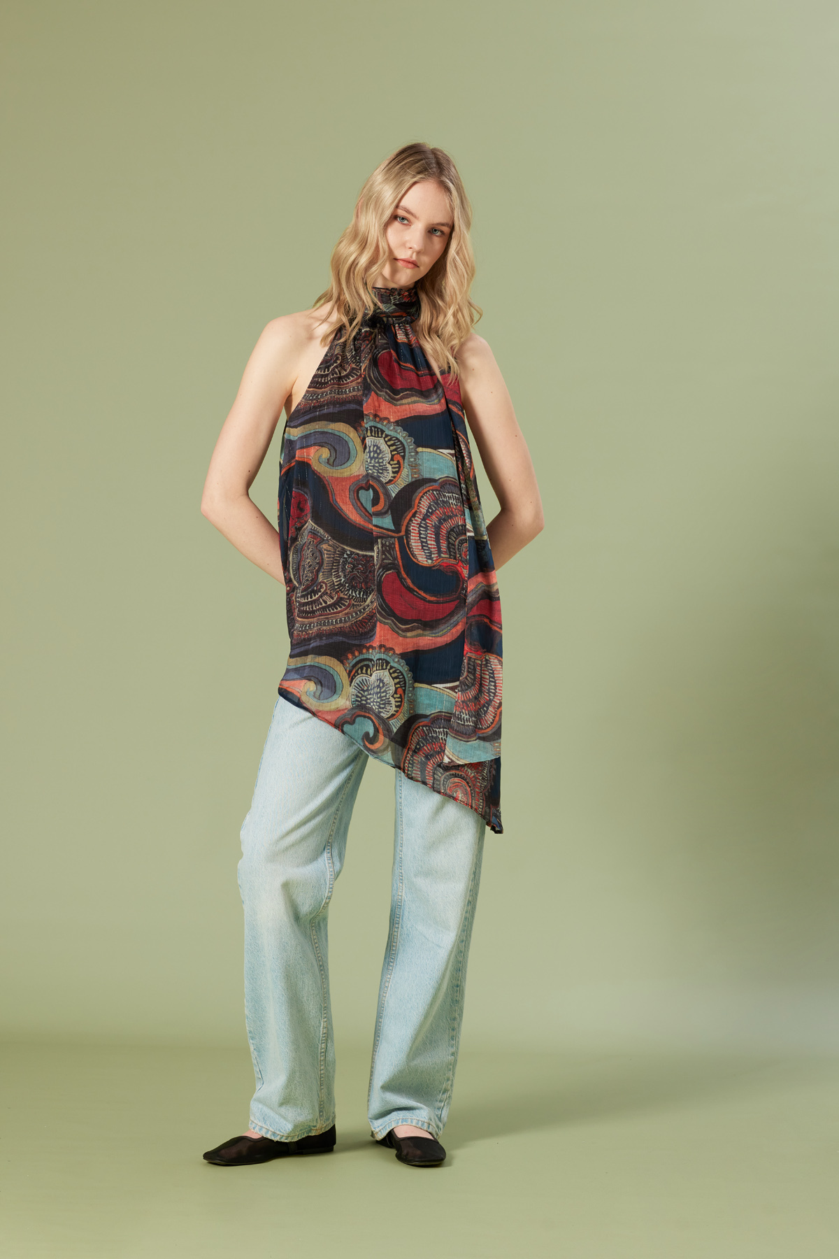 ميزات بلوزة غير متماثلة منقوشة من Nisan