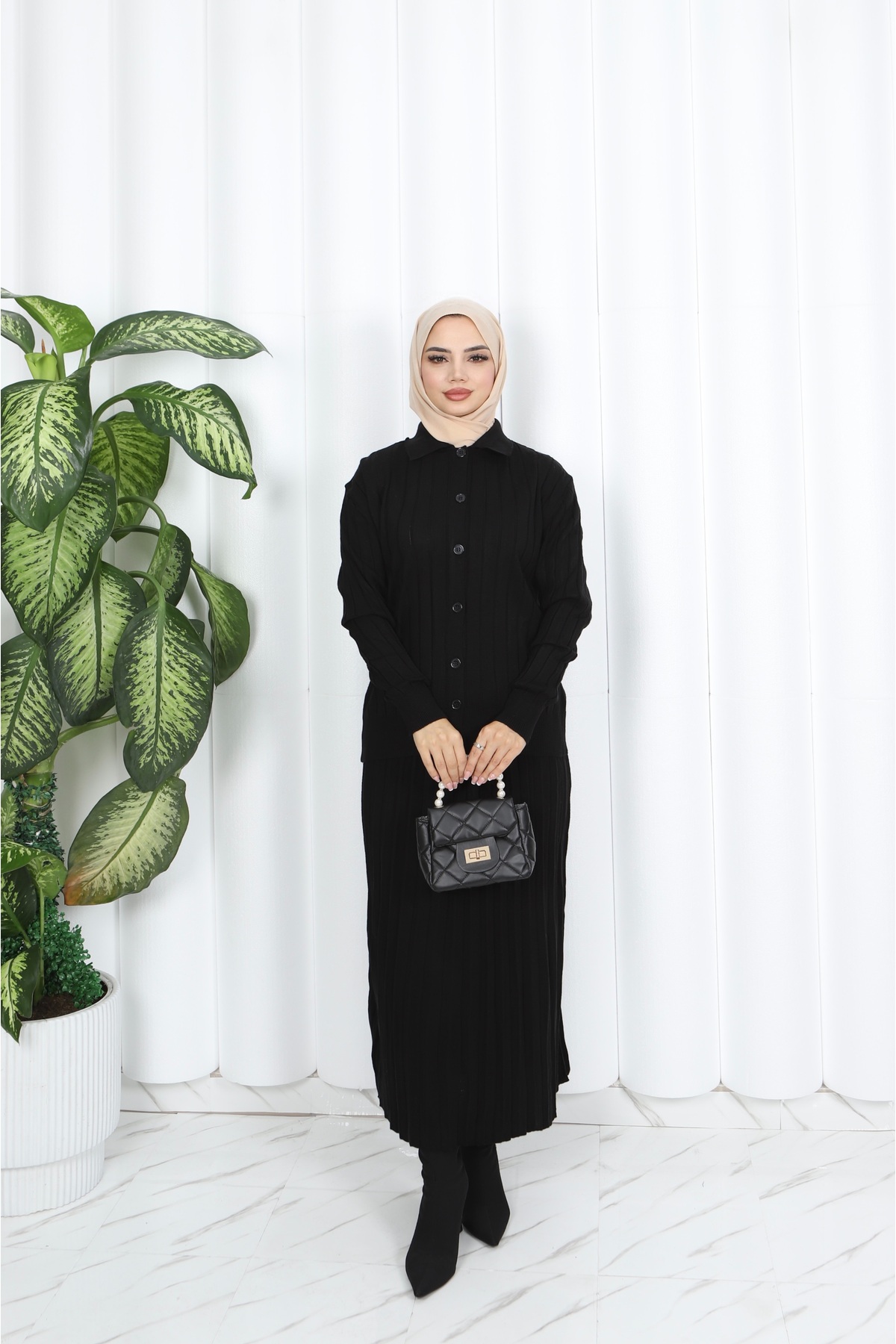 NİSUM MODA بدلة تنورة مطوي مع سترة