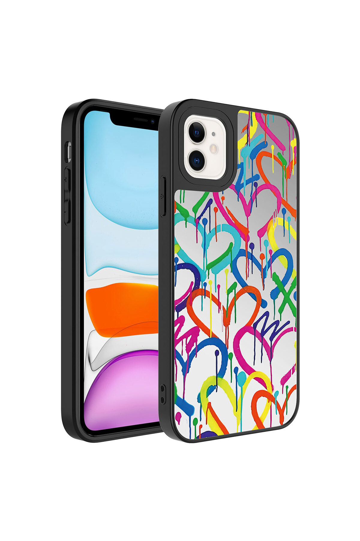ميزات حافظة JoieCreatif Mirror اللامعة المتوافقة مع هاتف iPhone 11 مع حماية للكاميرا - على شكل قلب من No7tech