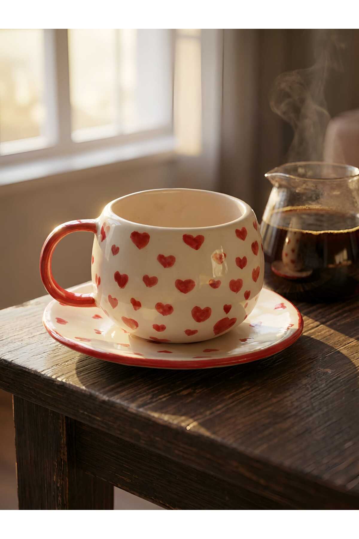 ميزات كوب قهوة بنقشة قلب من No8 Seramik Stüdyo