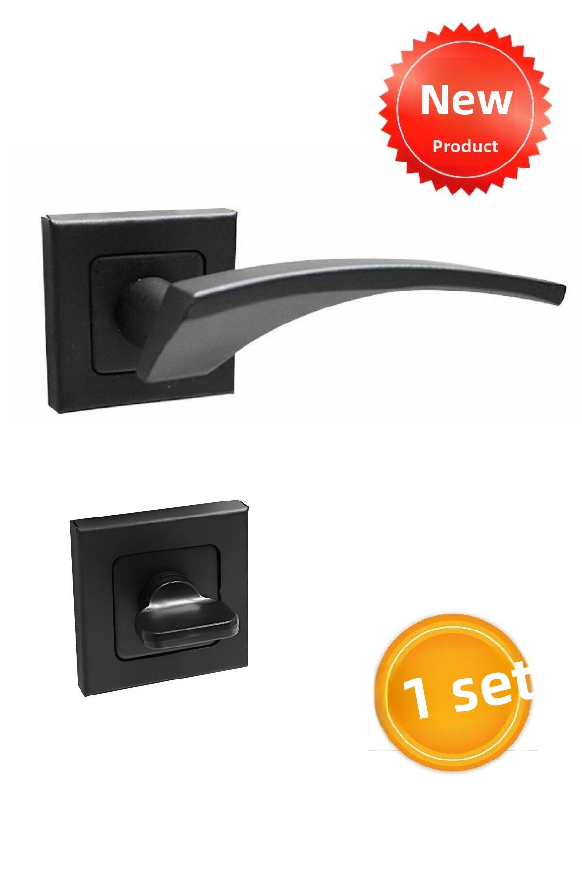 ميزات لافندر أسود غير لامع مع شارة مربعة - مقبض باب المرحاض من Nobel