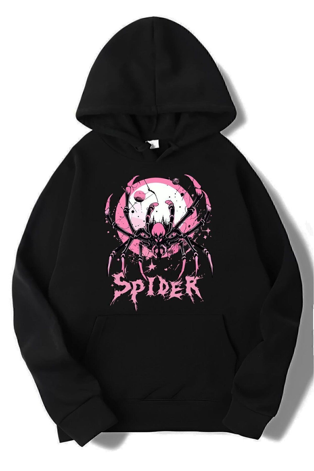 NOISSEY سترة سوداء كبيرة الحجم للجنسين بتصميم العنكبوت