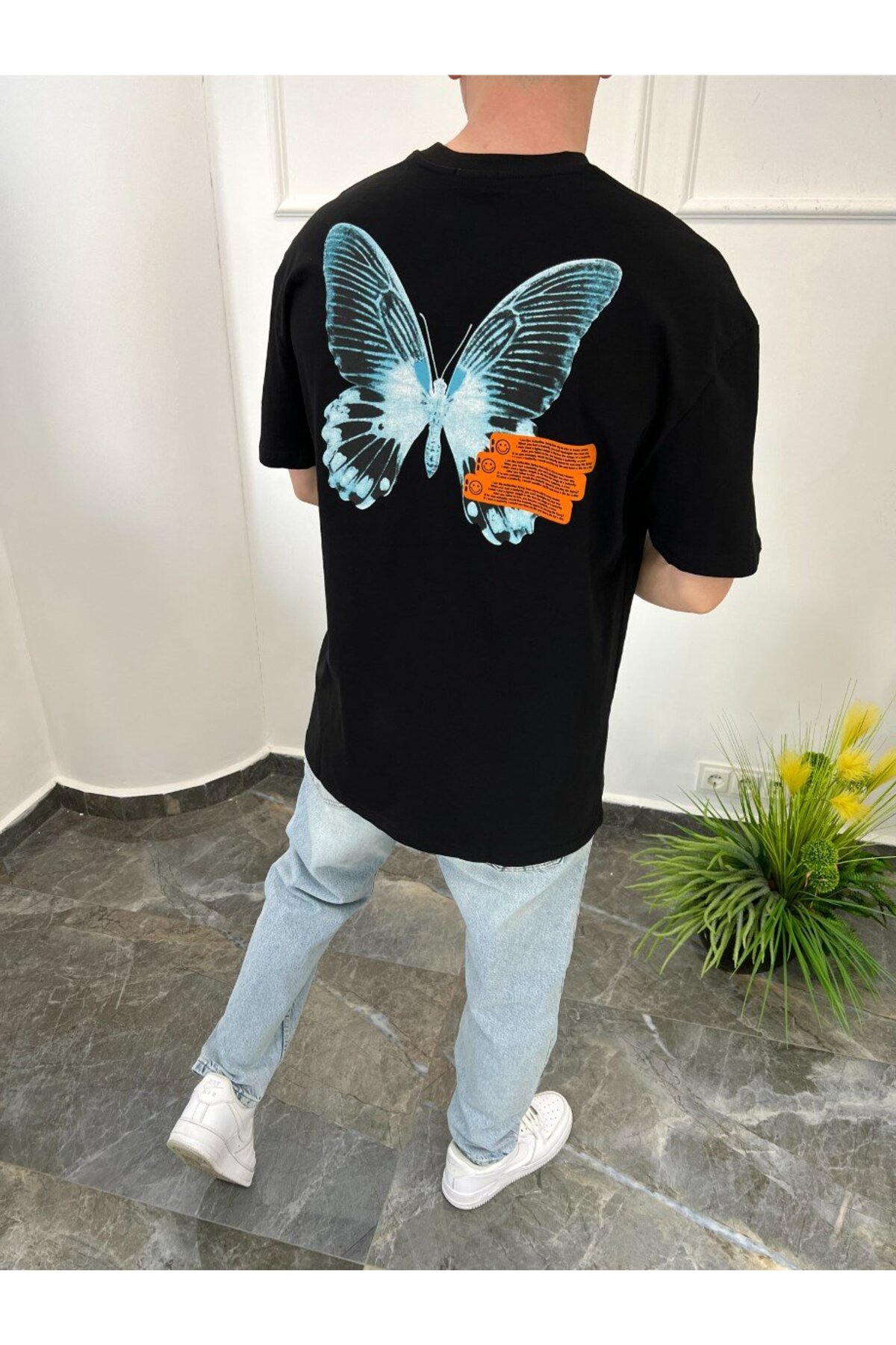 ميزات تيشيرت أسود بنمط الفراشة الخلفية من NOMARC