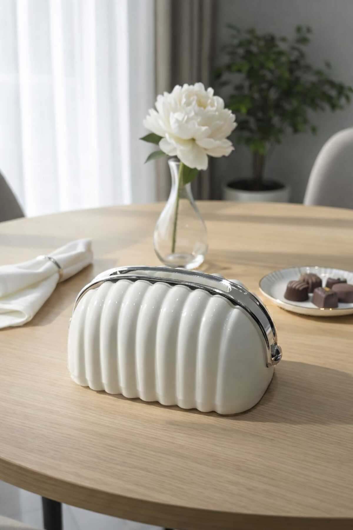Noor علبة مناديل سيراميك بتصميم صدفي عصري