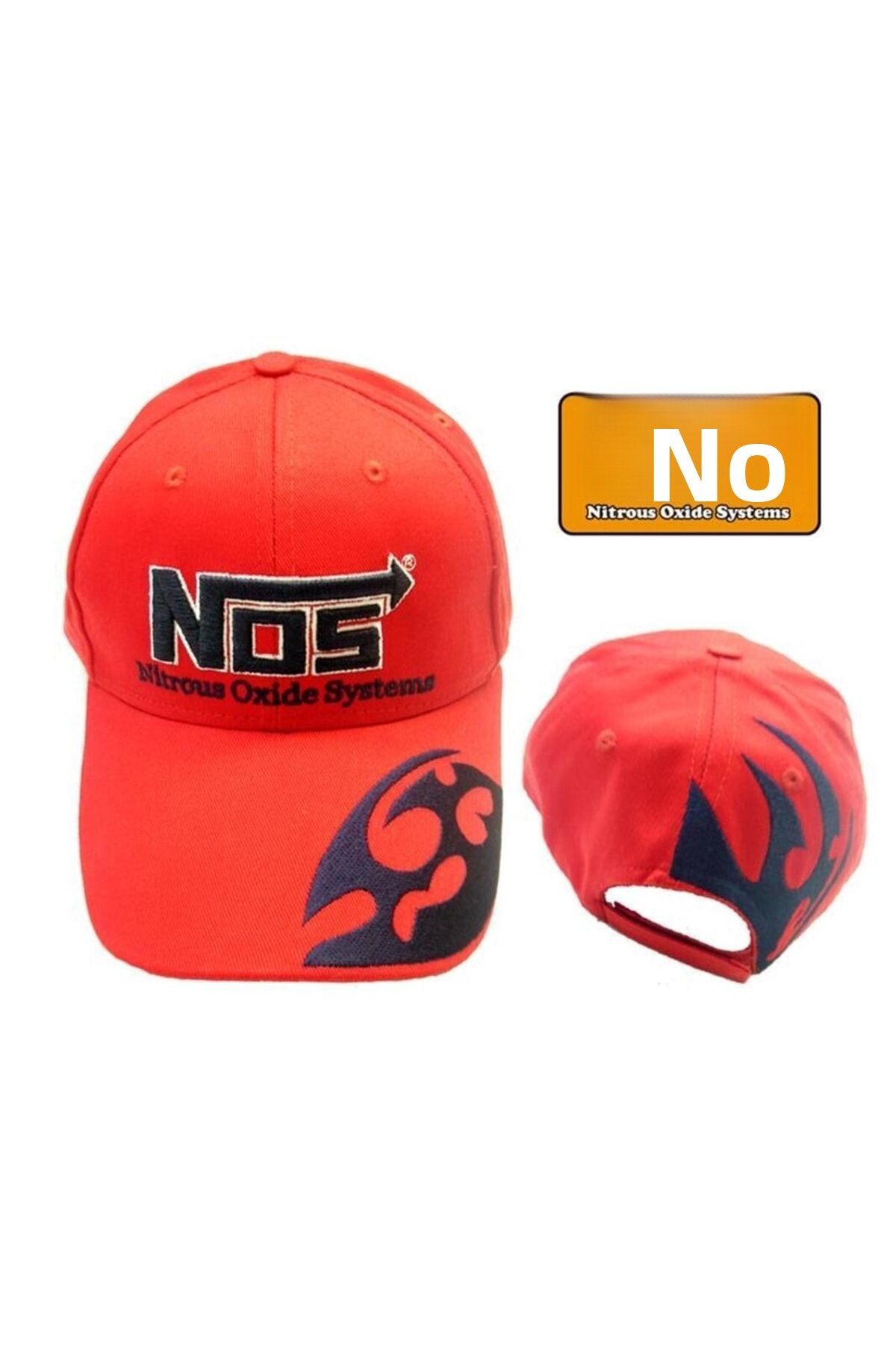 NOS قبعة حمراء مع لهب على الجانب، قبعة