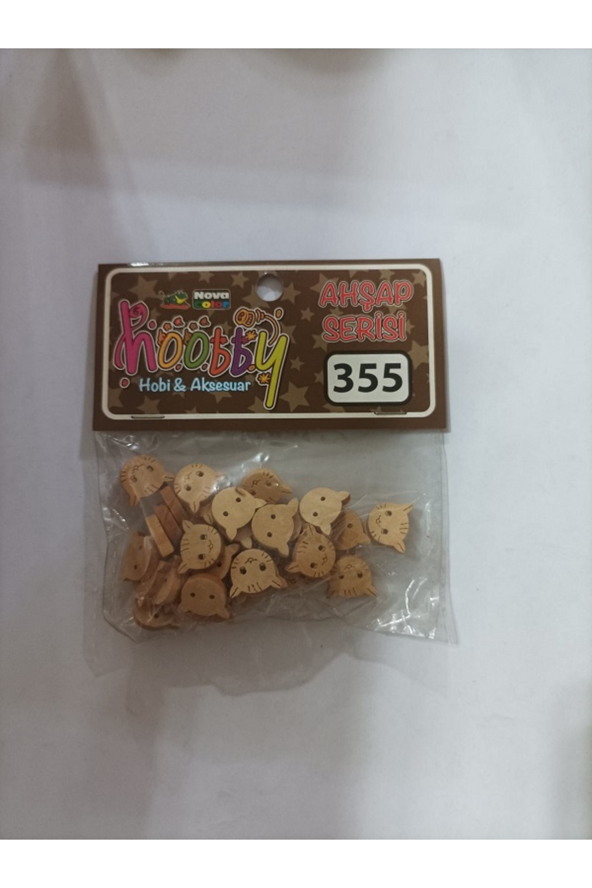 ميزات NC-355 نموذج قطة خشبية منقوشة بزر (عبوة واحدة) من Nova Color
