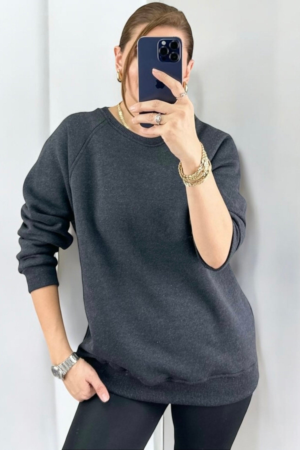 NUDEQUEEN سويت شيرت أساسي سميك كبير الحجم مع صوف من الداخل KGTBB0010