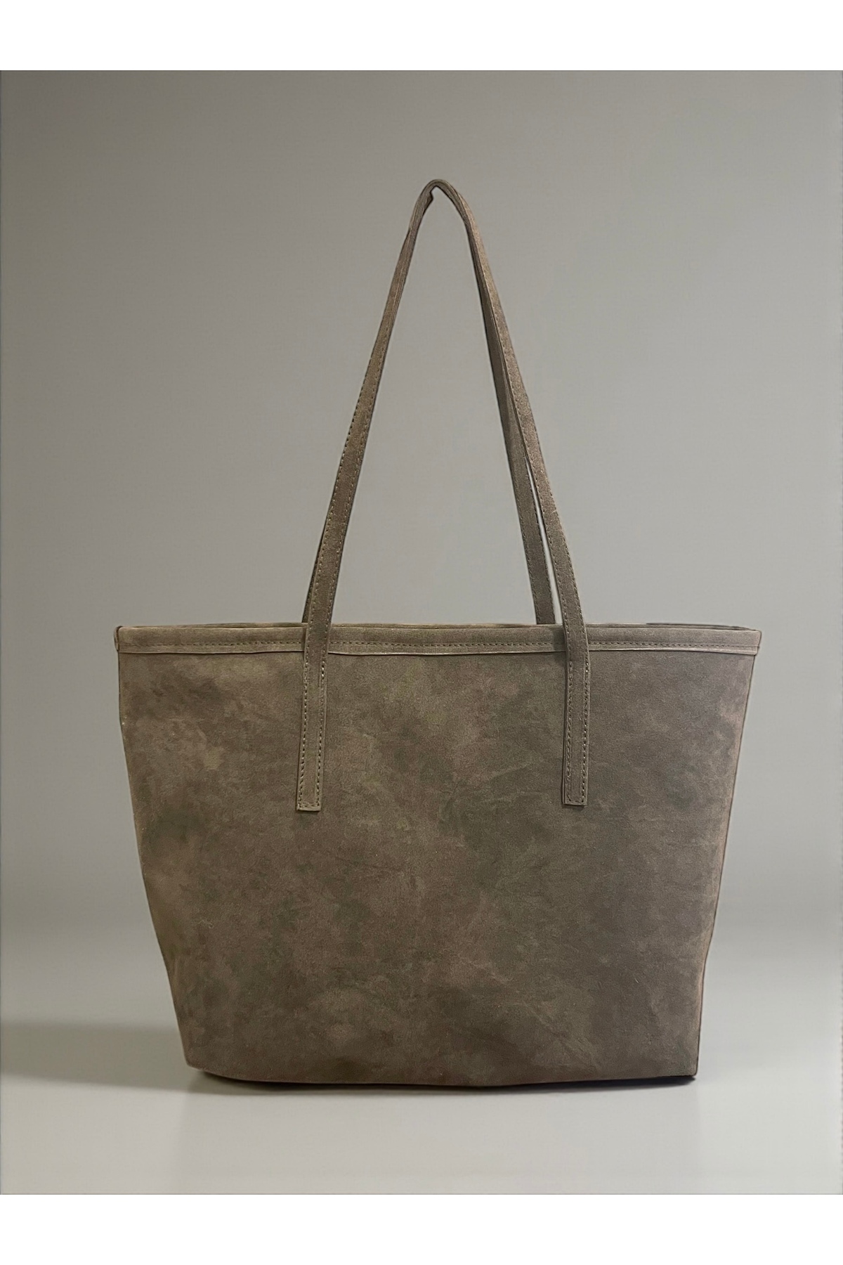 ميزات حقيبة كتف كبيرة الحجم من جلد الغزال ذات الوجهين - كاكي من Nuggita