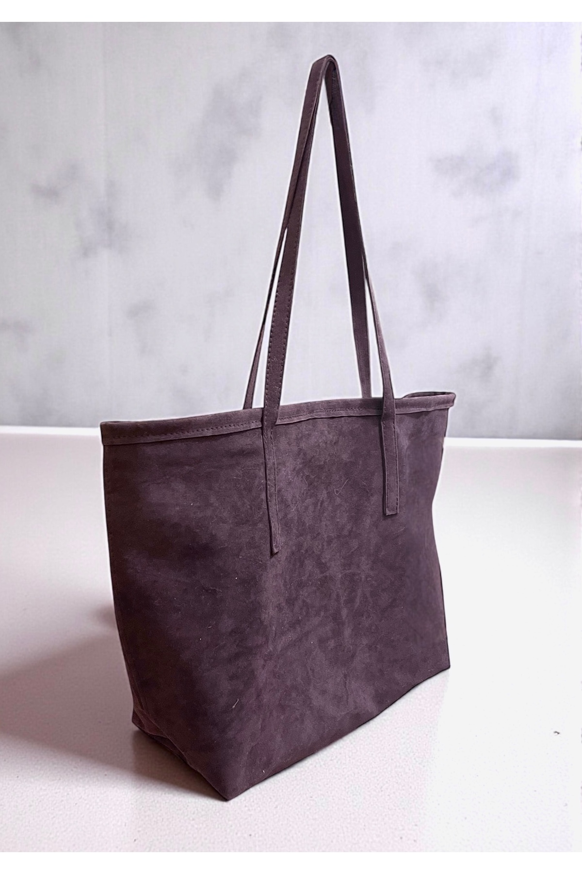 ميزات حقيبة كتف كبيرة الحجم من جلد الغزال ذات الوجهين - أرجواني من Nuggita