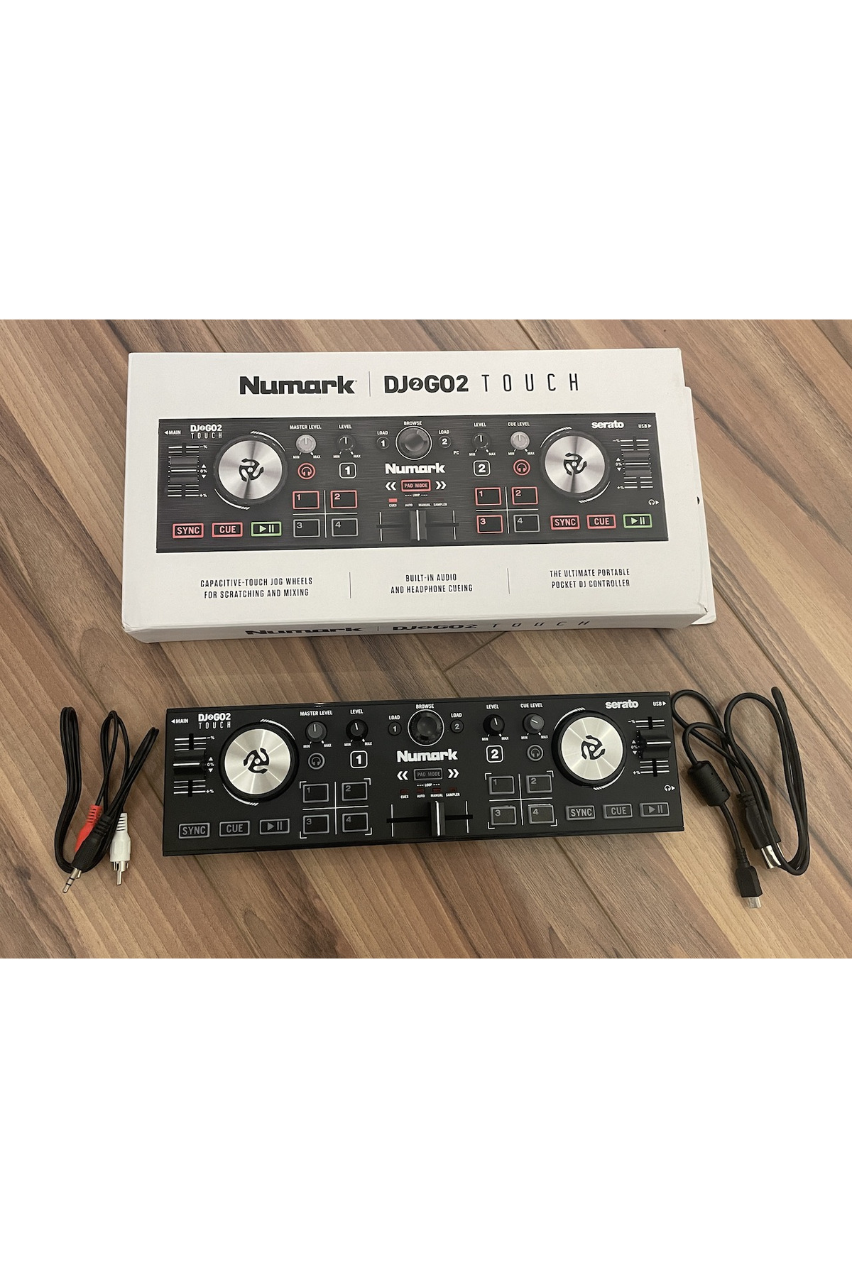 ميزات وحدة تحكم DJ بحجم الجيب مع عجلات لمس سعوية (DJ2GO2TOUCH) من NUMARK