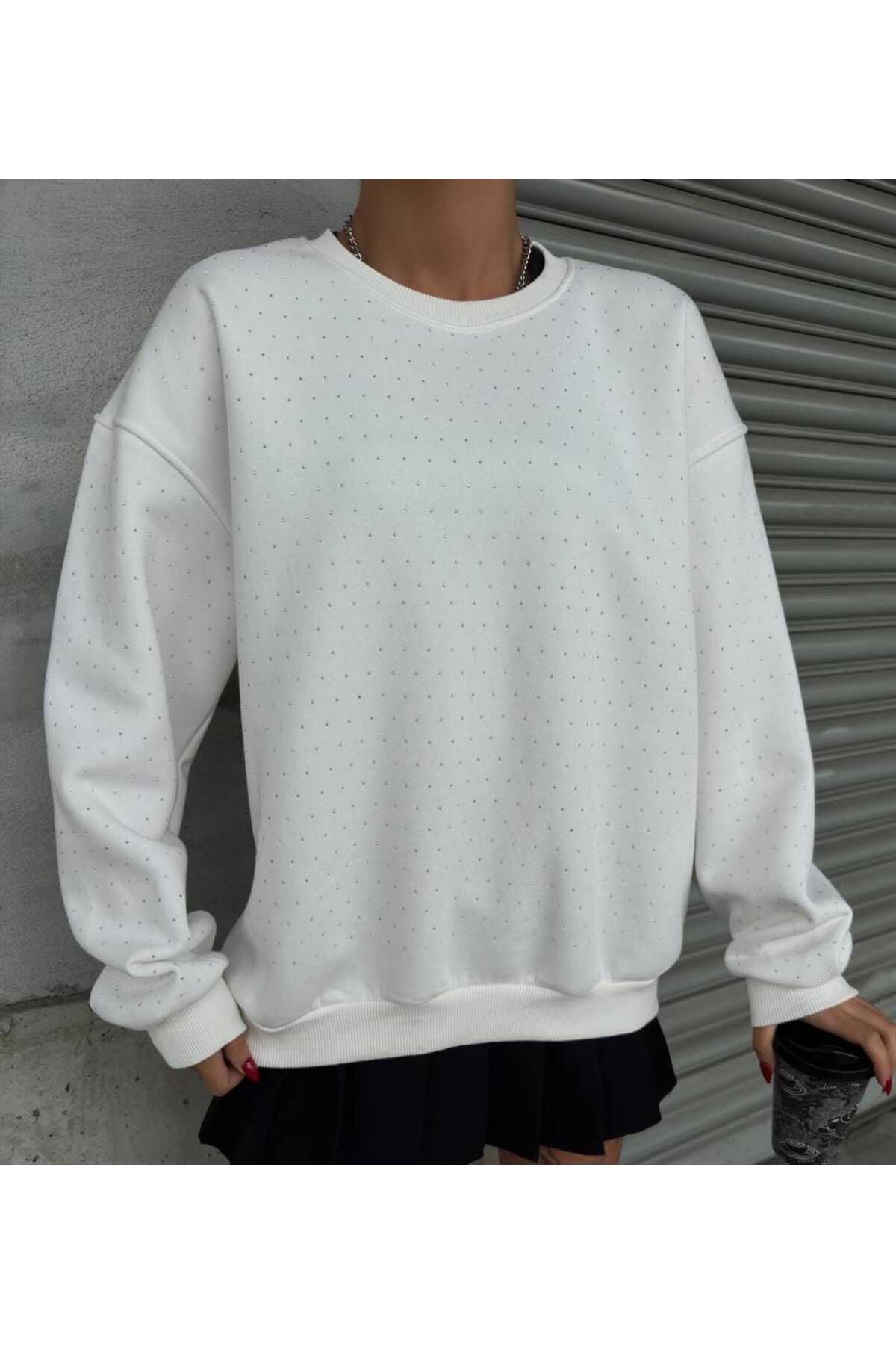Nursay سترة رياضية كبيرة الحجم مزينة بالترتر