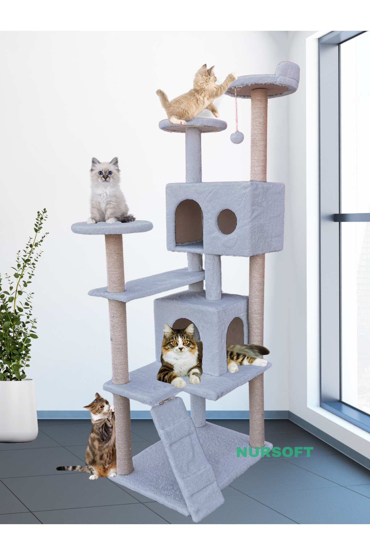 ميزات برج خدش بيت القطط من Nursoft