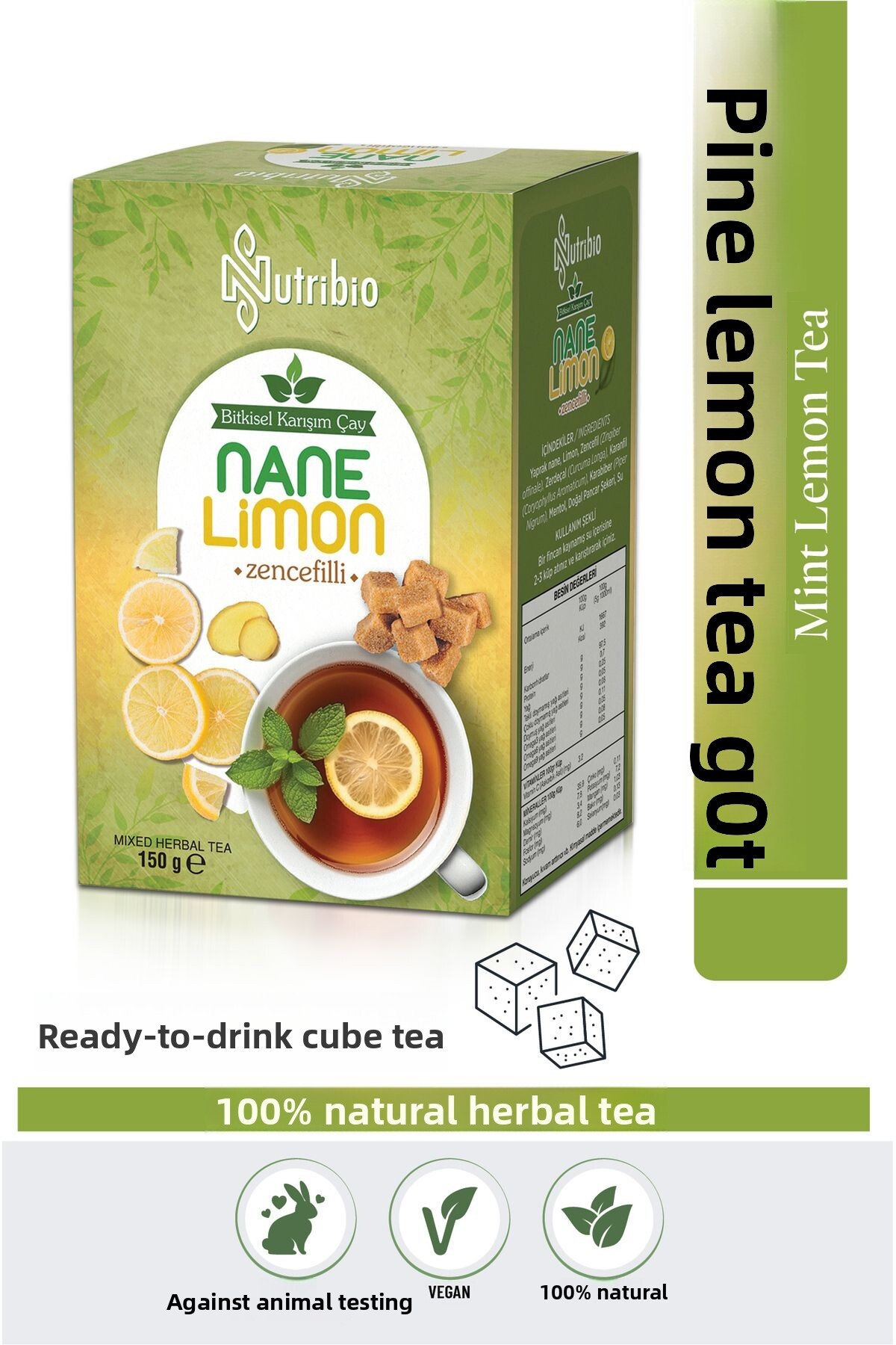 nutribio شاي بالنعناع والليمون 150 جرام - مكعب