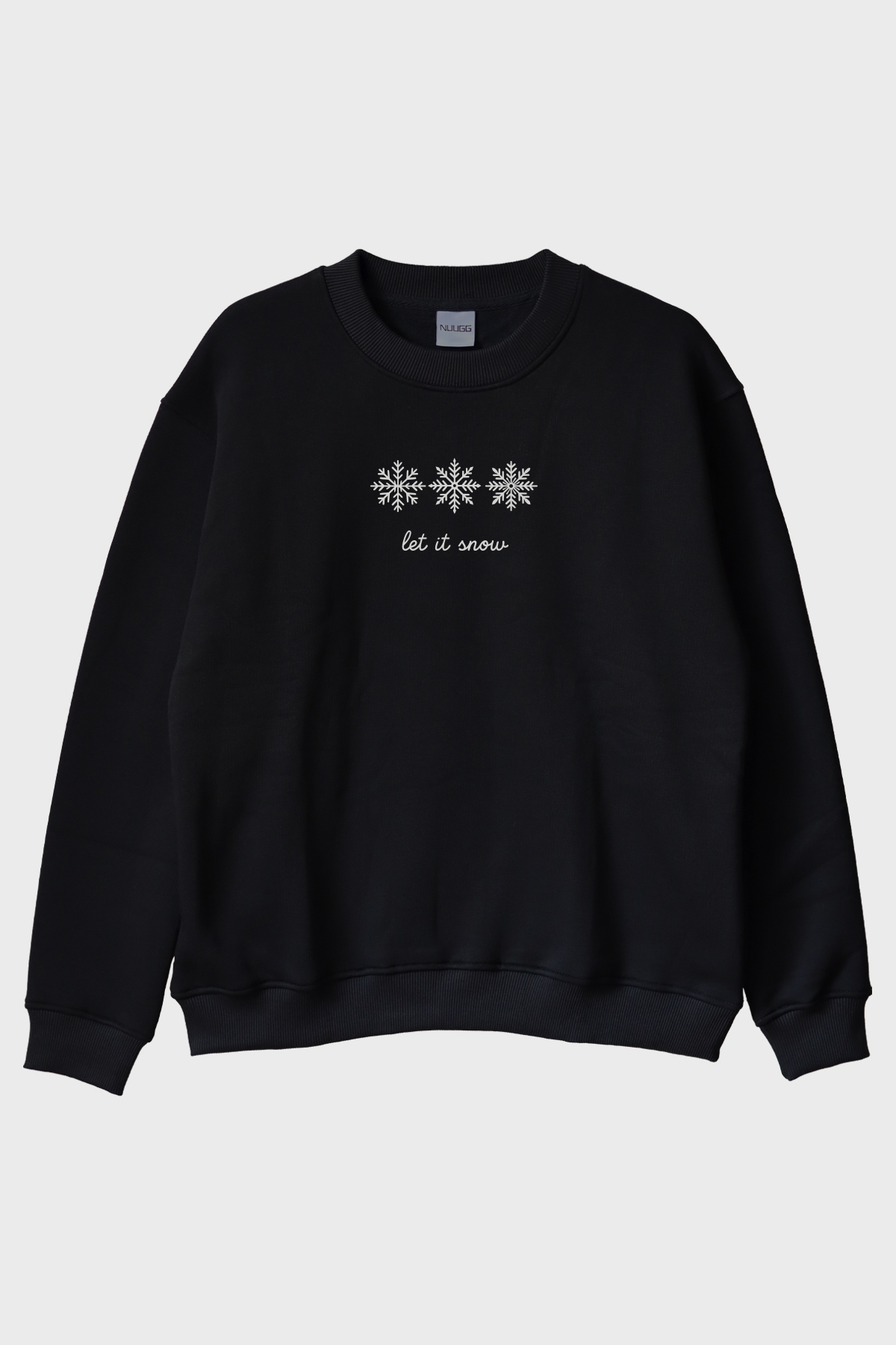 ميزات سويت شيرت أسود بياقة دائرية ونقشة ندفة الثلج من NUUGG