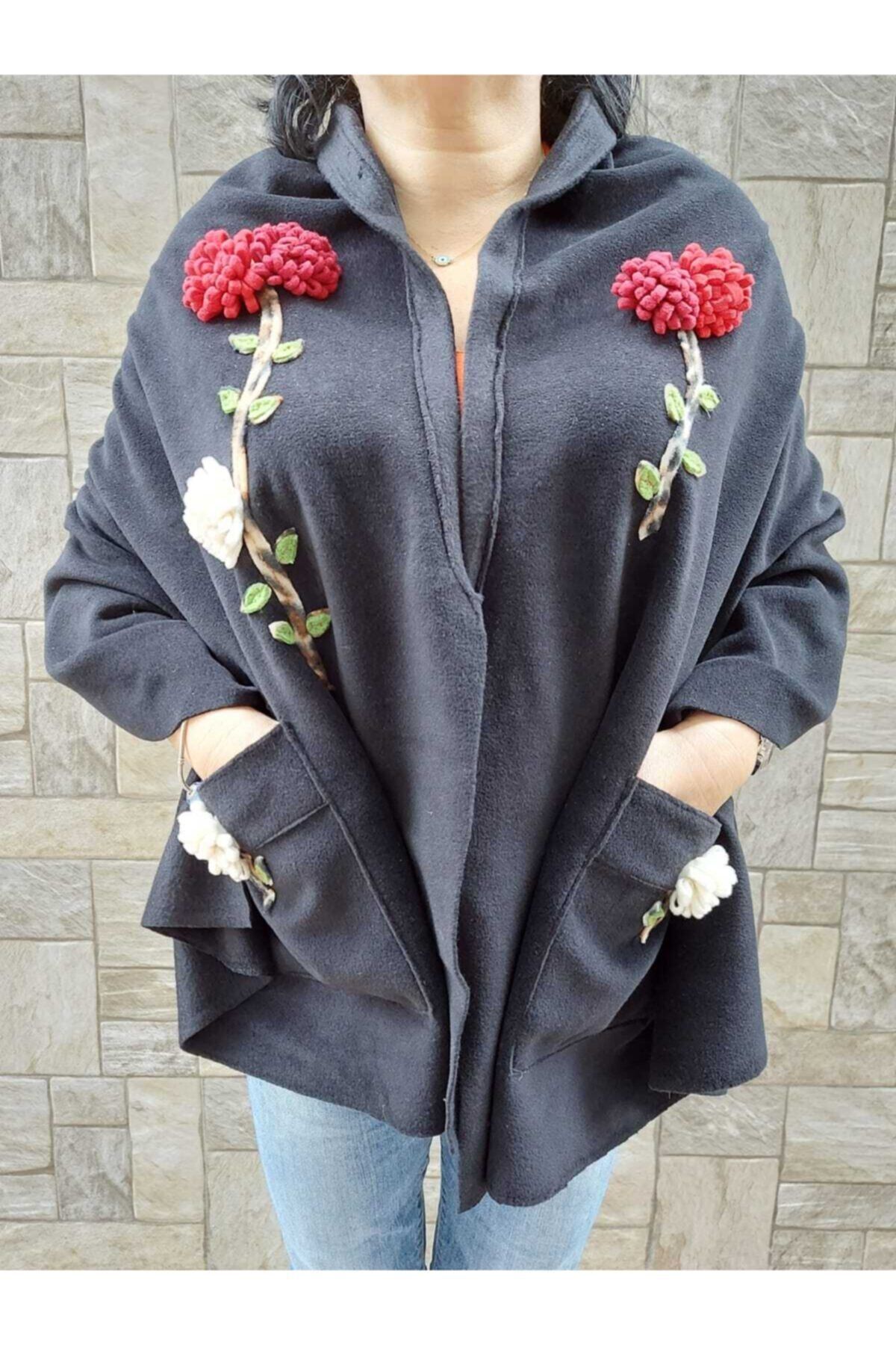 ميزات شال أسود مصنوع يدويًا من OBİDEV