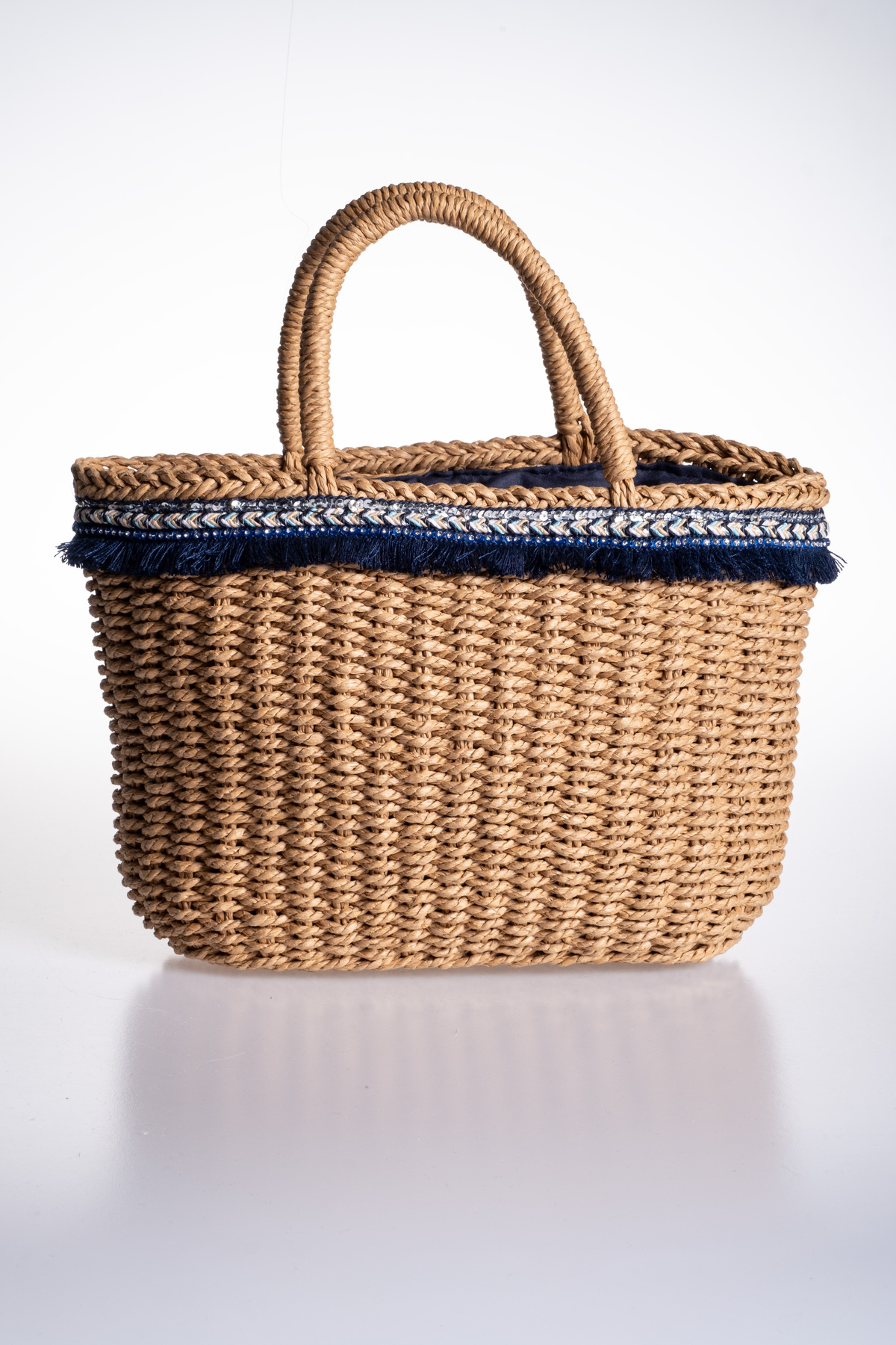 Oblavion حقيبة من القش مبطنة باللون الأزرق الداكن مع إكسسوارات