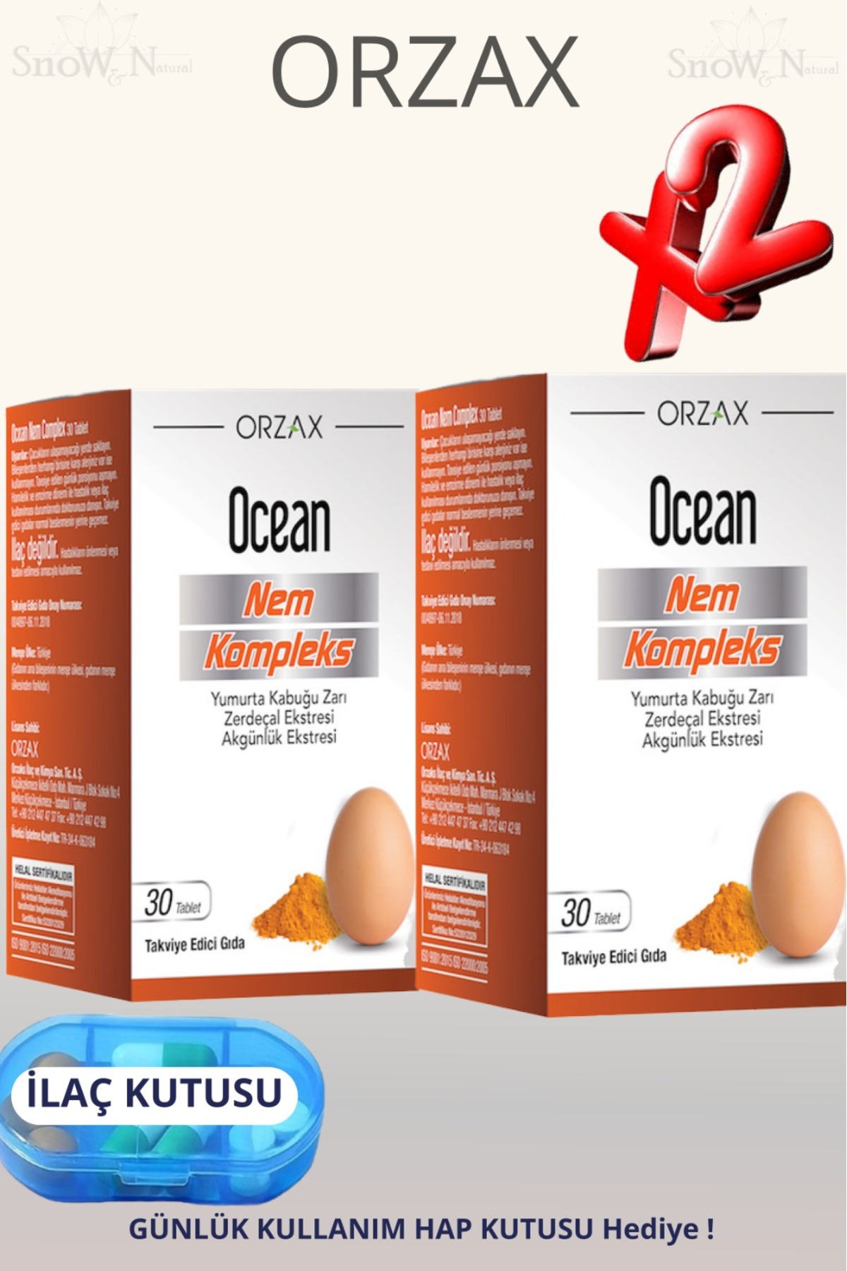 Ocean مركب نيم (قشرة البيض) 30 قرص 2 قطعة + علبة حبوب هدية