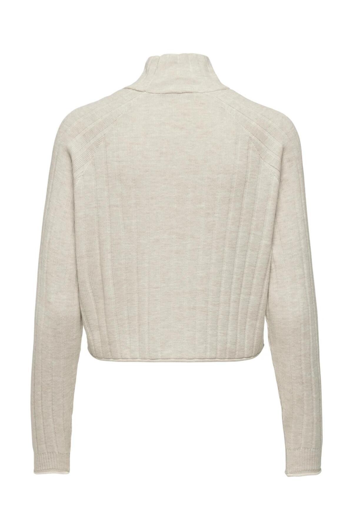 ميزات سترة عالية الياقة المدورة باللون البيج من ONLY
