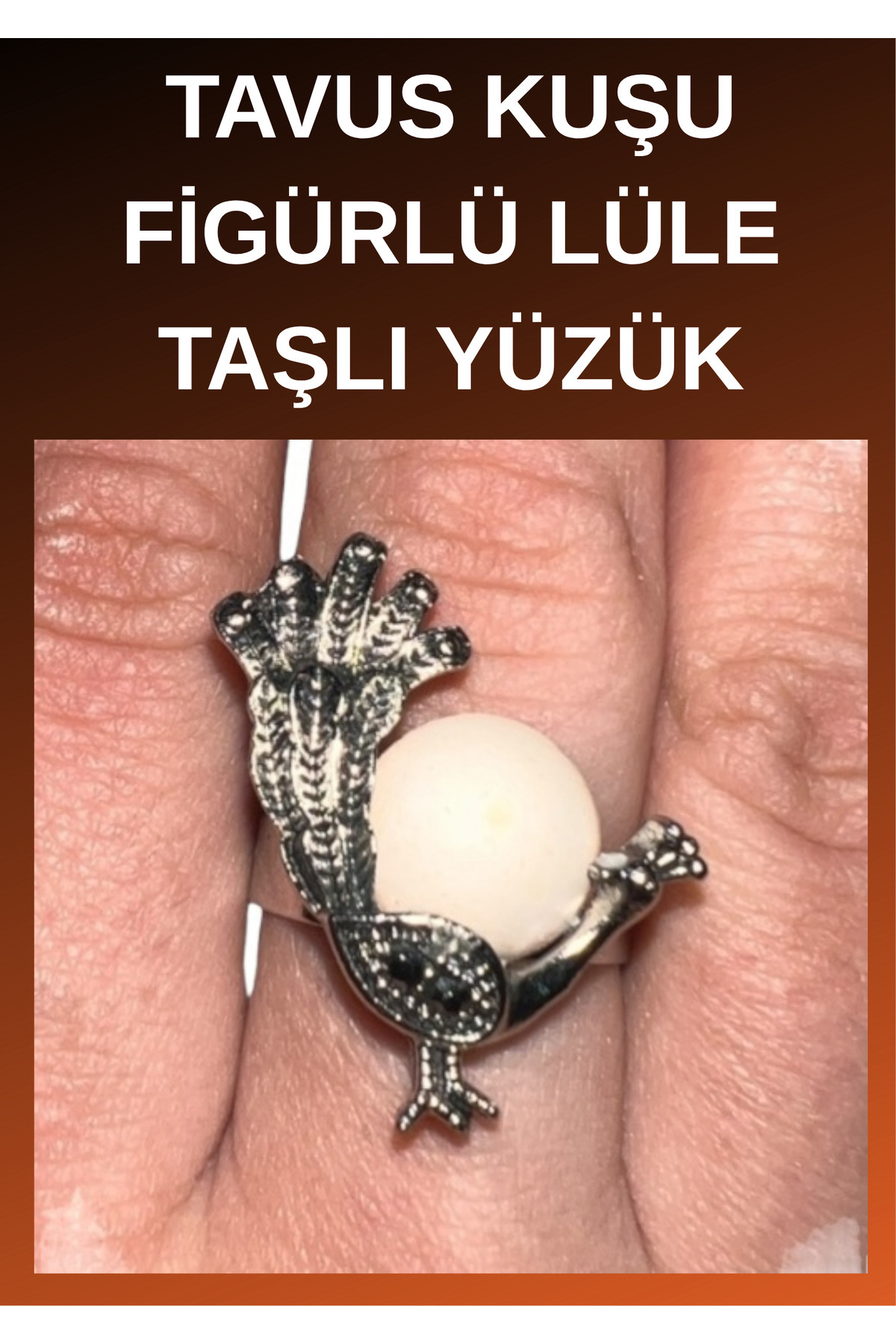 ميزات خاتم مزين بتمثال طاووس وحجر اللؤلؤ من onyyapim