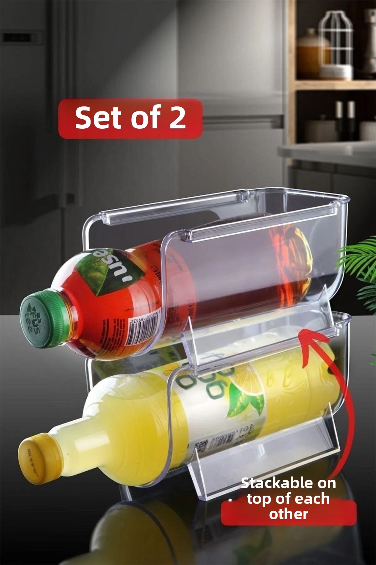 ميزات منظم زجاجات شفاف قابل للتكديس مكون من طبقتين شفافتين من Open Home Concept