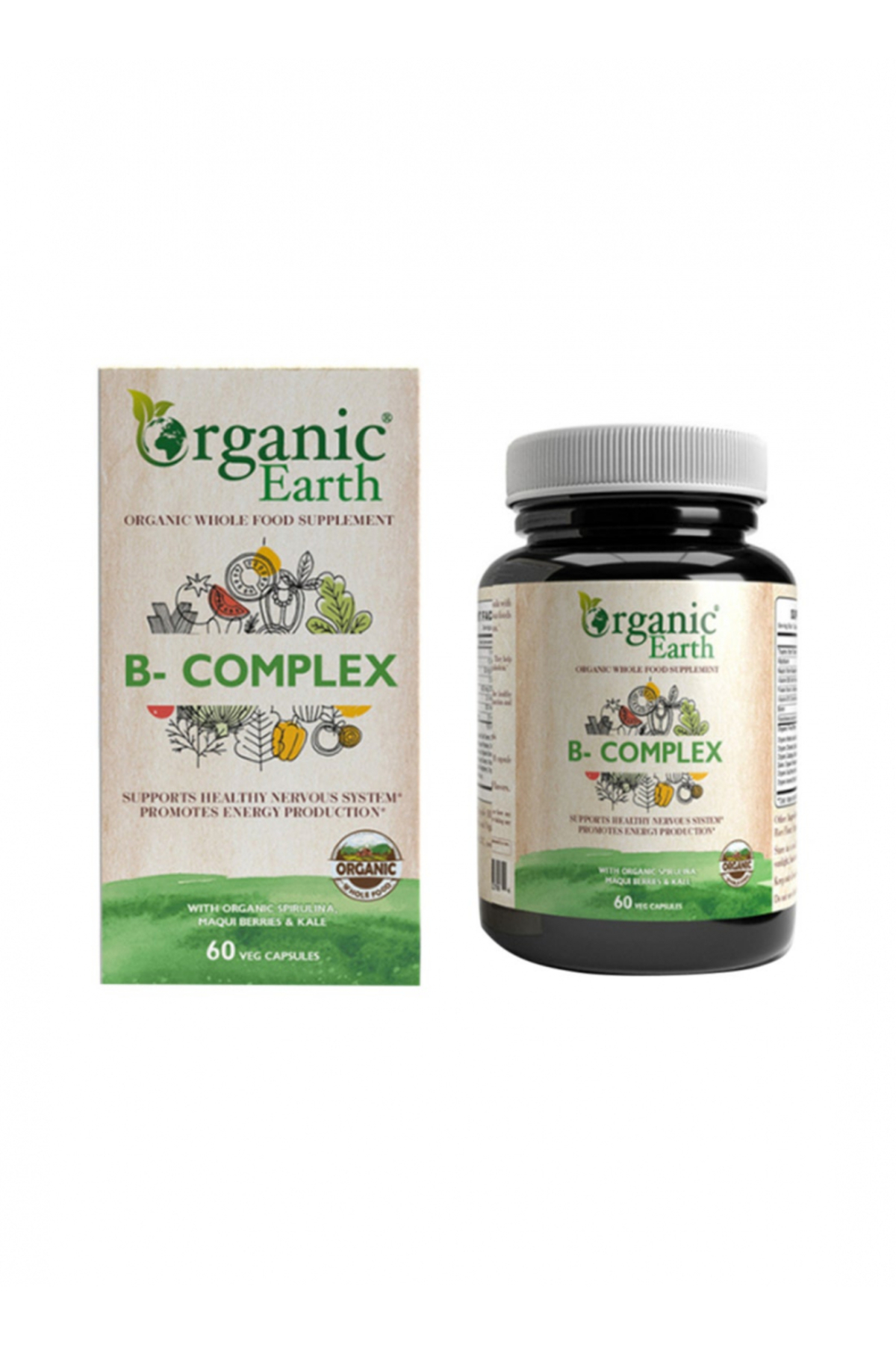 ORGANIC EARTH كبسولات فيتامين ب المركب، 60 كبسولة