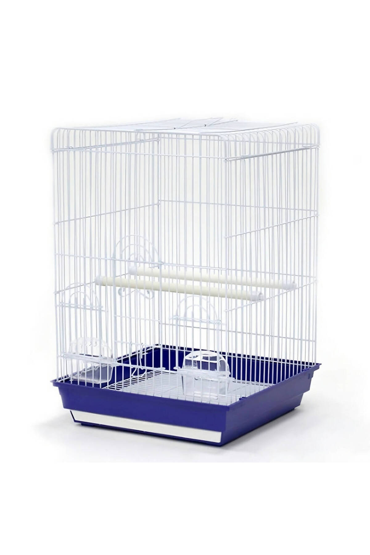 Includes food bowl, drinking bowl, perches, top hanger, removable tray