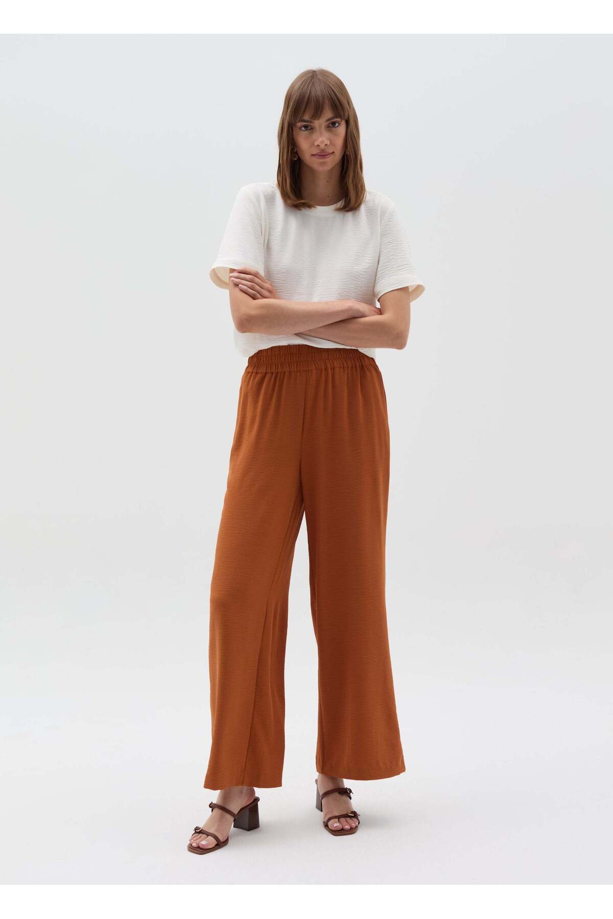 ميزات بنطلون سائل بتأثير مجعد من Ovs