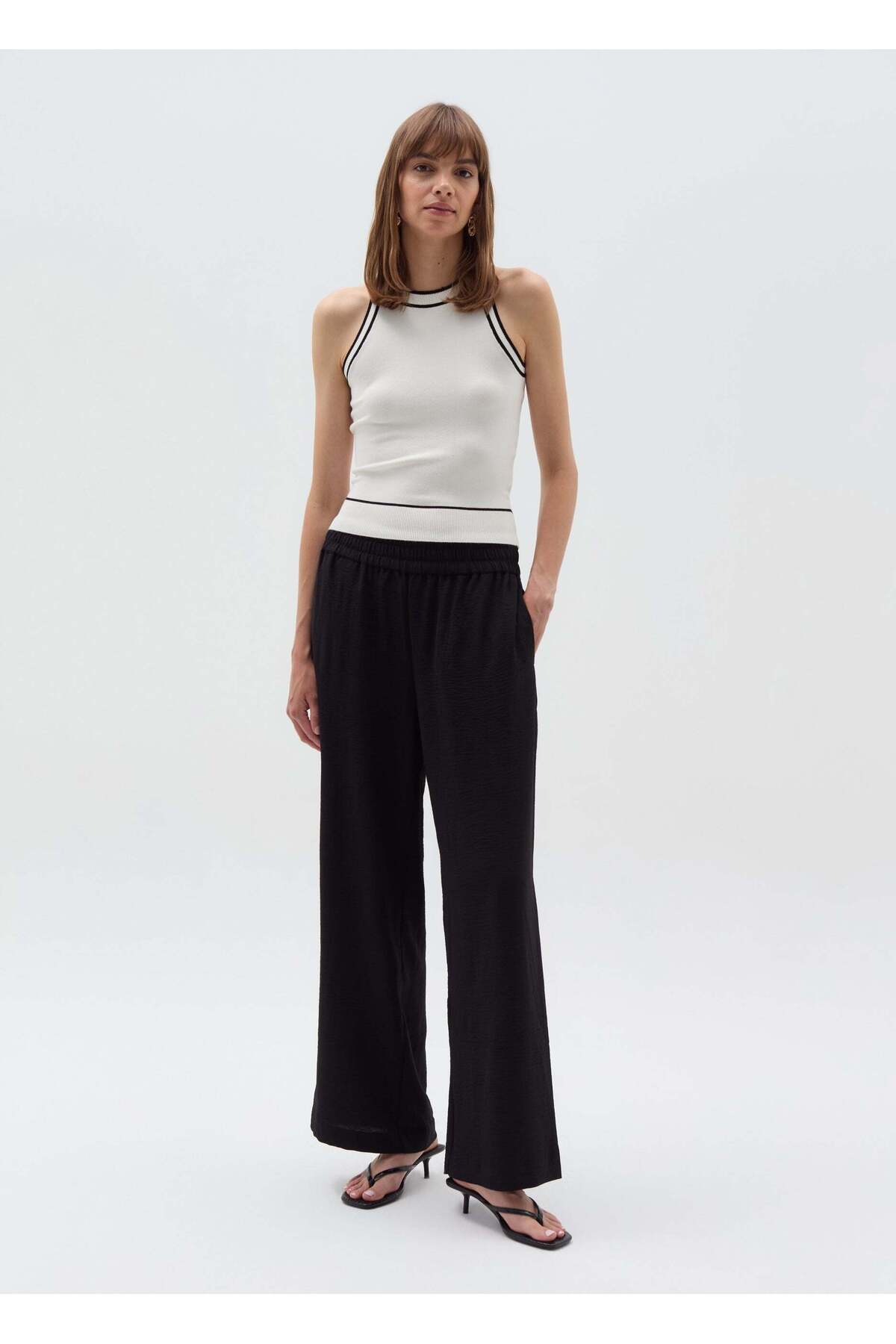 ميزات بنطلون سائل بتأثير مجعد من Ovs